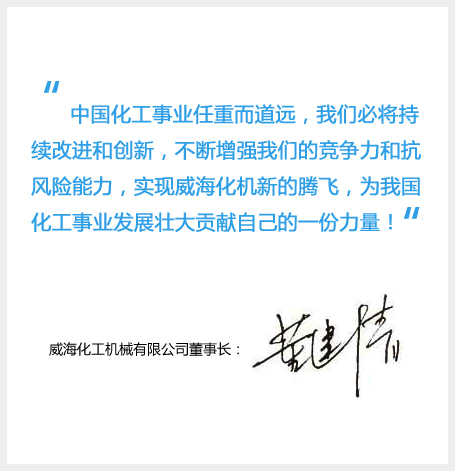作為國內專業的攪拌反應釜生產基地,我們必將堅持自我約束、自我完善,爭做行業的榜樣和先鋒。中國化工事業任重而道遠,我們必將持續改進和創新,不斷增強我們的競爭力和抗風險能力,實現威?;瘷C新的騰飛,為我國化工事業發展壯大貢獻自己的一份力量!